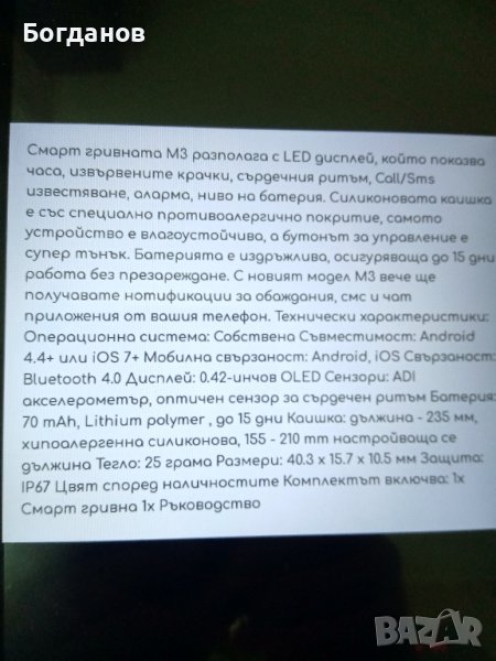 INTELLIGENCE HEALTH BRACELET M3 COMFORTABLE СМАРТ ГРИВНА → Обява 44145814