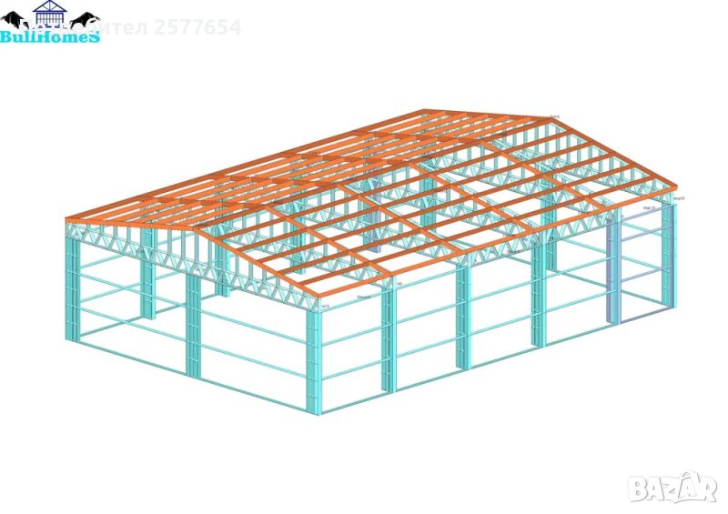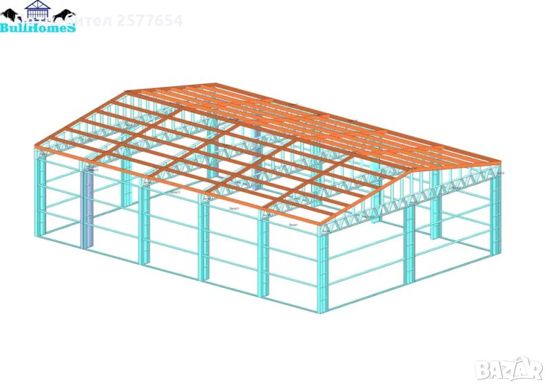 Конструкция за Хале, склад 140м2 - 10м х 14м х 3м - етап Конструкция - готови за сглобяване профили.