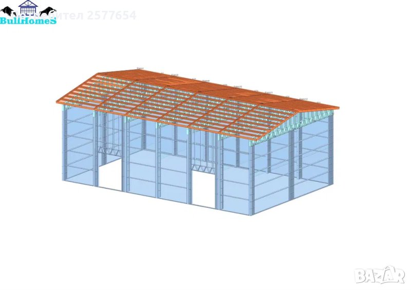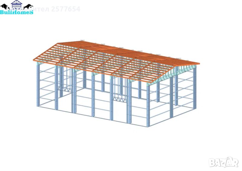 Конструкция за Хале, склад 160м2- 16.00м х 10.00м - етап Конструкция - готови за сглобяване профили.