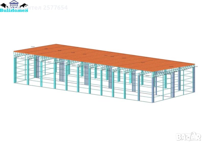 Конструкция за Хале, склад 470 м2 - 13.80м х 34.10м х 5.00м- етап Конструкция - готови за сглобяване профили.