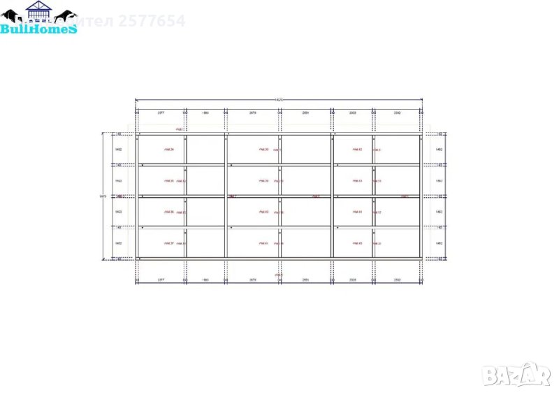 Офиси,Магазини 98.3м2 -6.6м х 14.9м - етап Конструкция - готови за сглобяване профили.