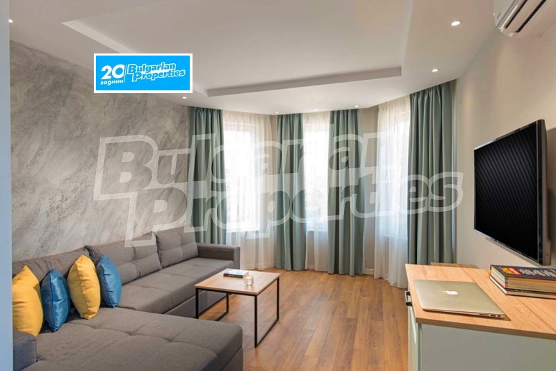 Висококачествено строителство със стилна аранжировка включващо LED осветление и елегантни Black out завеси, стени с мазилка Травертино , дизайнерско обзавеждане с мебели, кухненски шкафове и др.