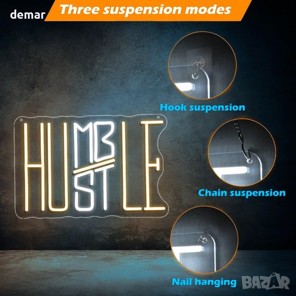 Осветете вашето пространство с топлия, привлекателен блясък на Hustle LED неонова табела. Този енергийно ефективен знак може да се захранва от компютри, зарядни устройства или захранващи банки и разполага с превключвател за ВКЛ./ИЗКЛ. за удобна употреба. С два отвора за окачване и верига, инсталирането е лесно, което ви позволява да го местите и позиционирате, както желаете. Независимо дали искате да добавите нотка топлина към стаята си или да създадете забавна парти атмосфера, този знак е перфектната артистична декорация. Също така е чудесен подарък за рождени дни, Коледа и други специални поводи, носейки усмивка на всеки, който се радва на жизнена атмосфера.