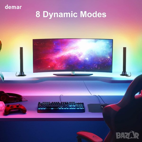 Ustellar RGB светлинна лента за синхронизиране с музика,8 динамични режима за декорация на стая 2 бр
