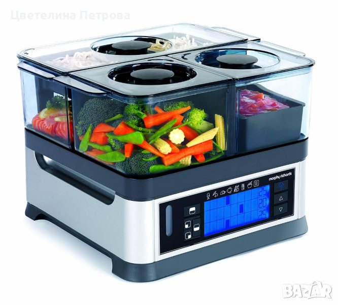 В комплекта - Morphy Richards Intellisteam, една тава за ориз, две тави за сос, един отделящ се разделител