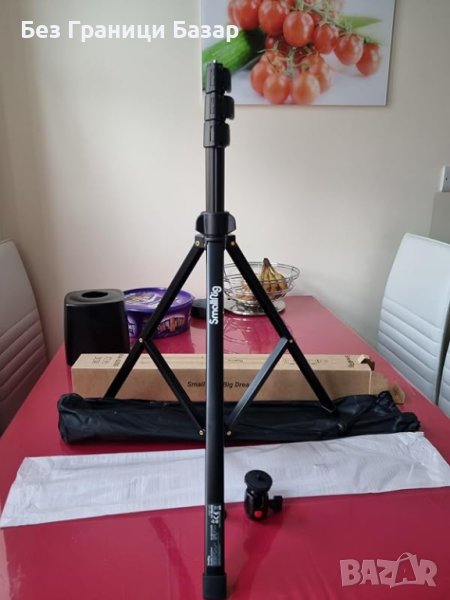 Портативност: Сгъваема светлинна стойка SmallRig RA-S200 с регулируема височина от 56 до 200см, лесна за транспортиране.