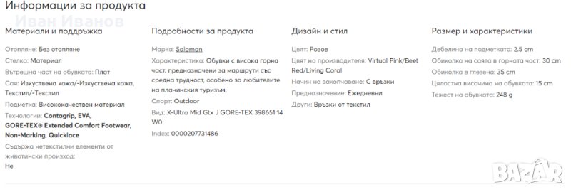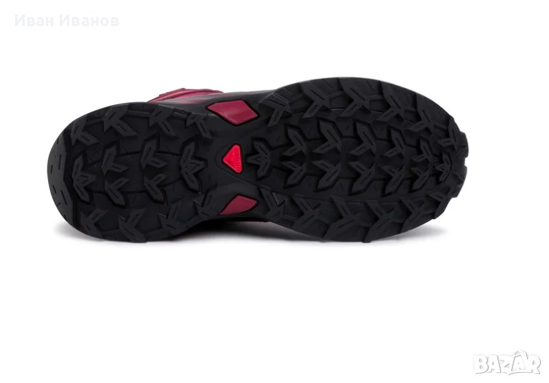 Salomon X-Ultra Mid GTX е предназначен за деца, които искат отлично сцепление, защита от атмосферни влияния и опора. Има същата агресивна външна подметка като версията за възрастни X-Ultra, пълна GORE-TEX® мембрана и опора на средна височина, но в същото време използва характеристиките на по-гъвкава междинна подметка. Външната подметка Contagrip® е проектирана за мокро и сухо сцепление при технически трудни терени. Има дълбоки канали и многопосочна стрелка. Обувките с GORE-TEX® мембрана осигуряват дишаща хидроизолация и защита срещу неблагоприятни климатични условия през цялата година. Средно високата кройка и стабилната междинна подметка осигуряват увереност по неравни пътеки.