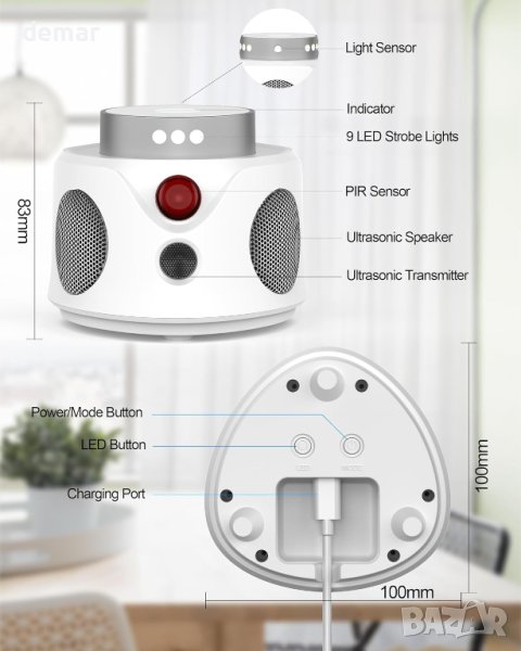 Ултразвуков уред за прогонване на мишки, гризачи за вътрешни помещения на закрито