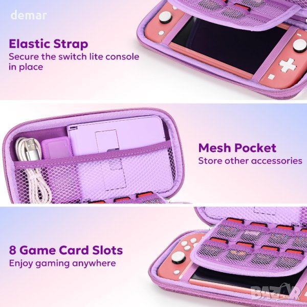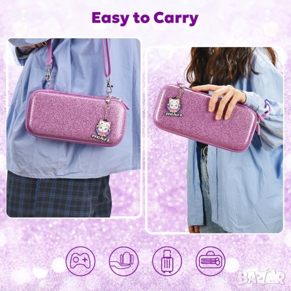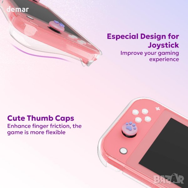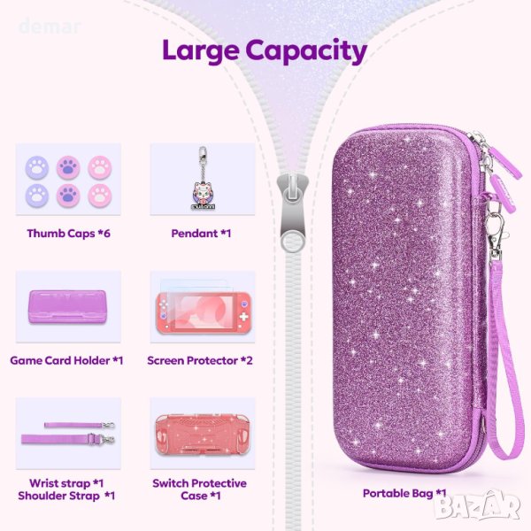 Този пакет 14-в-1 Switch Lite е предназначен изключително за потребители на Switch Lite, като предлага всеобхватна защита и удобство със своя стилен розов калъф за носене с пайети, прозрачен протектор, протектори за екрана, ръкохватки за палци, калъф за игрови карти и др. Пакетът гарантира, че устройството ви остава сигурно, без надраскване и стилно, с добавени функции като мрежесто отделение с голям капацитет за аксесоари, слотове за игрови карти и регулируеми презрамки за разнообразни възможности за носене. Перфектно като подарък, това решение "всичко в едно" подобрява игровите изживявания, като същевременно поддържа вашия Switch Lite и аксесоарите организирани и защитени. Идеален за геймъри, които ценят както функционалността, така и модата.
