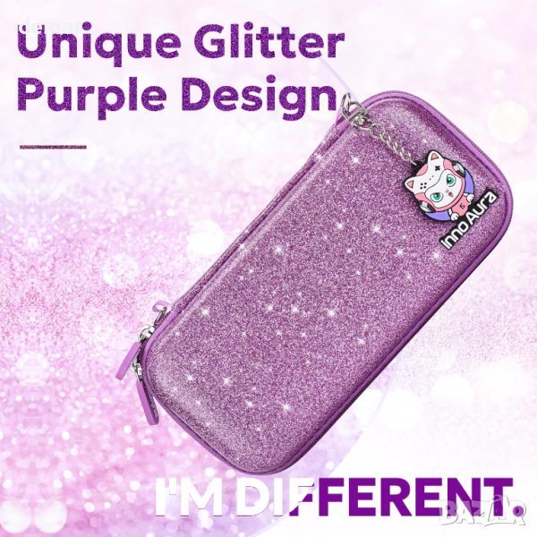 Комплект аксесоари 14 в 1 за Switch Lite innoAura с лъскав калъф (лилав с пайети)