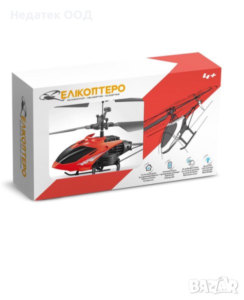 Хеликоптер с дистанционно управление със сензор за движение и led светлина. Подходящ е за използване на закрито. Работи с 1 батерия тип 3.7V 90mAh за хеликоптера (включена) и 1 батерия тип CR1220 за контролера (не е включена).