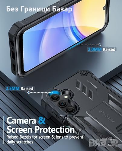 - Военно ниво на защита: Калъф за Samsung A15 5G, устойчив на падания, с укрепени ъгли и повдигнати ръбове.