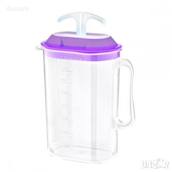 Възползвайки се от свежото ни предложение – кана за айрян с бутало за разбиване и разбъркване, ще може по всяко време в хладилника да имате свежа ободрителна напитка. Гравираната мерителна скала ще ви даде точни данни за консумираното от вас количество.