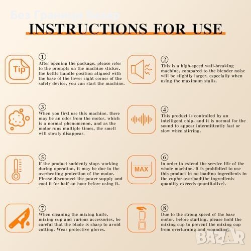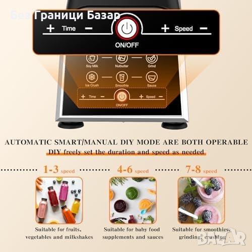 Многофункционален: 8 предварително зададени програми - като за кубчета лед, смутита, мляко от соя, сосове и други.