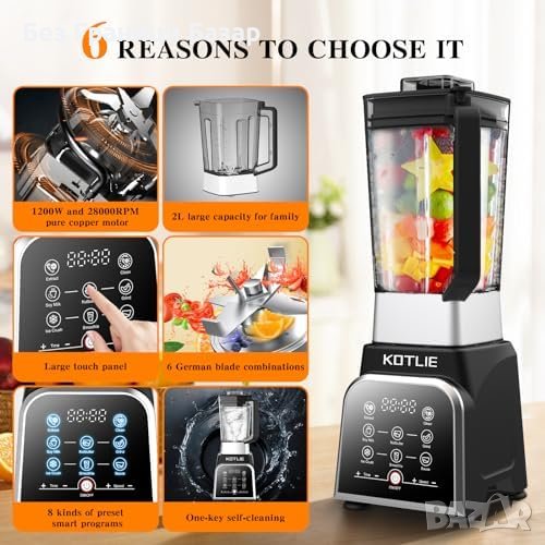 Нов Мощен блендер KOTLIE 2000W 28000RPM 8 Програми Смутита Сосове