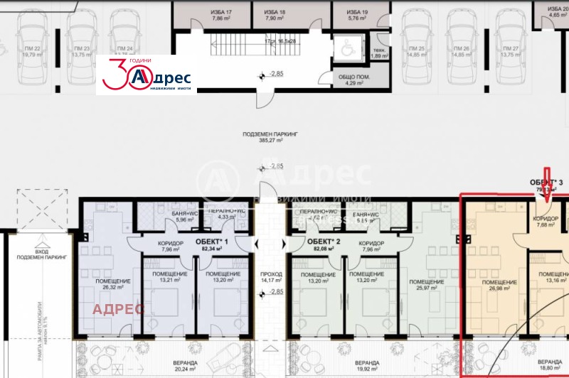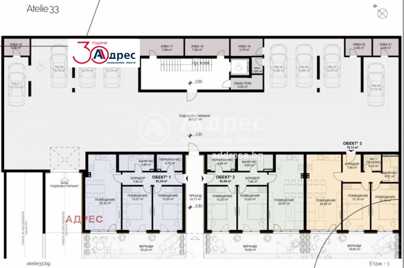 Това жилище е с собствен двор на ниво партер, верандата ще бъде оградена за ползване само от собственика. Изключително просторно и слънчево жилище с усещане за къща. Разпределението по квадрати е както следва жилищна част 94,55м2 + 18,80 веранда =113,35 м2 общо за апартамента.