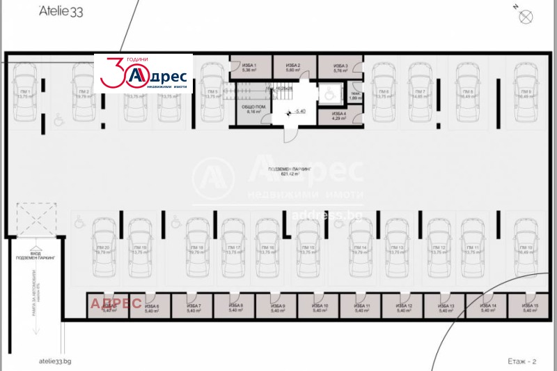Паркоместата са разположени до или срещу избите на сответния апартамент, за да могат лесно да бъдат обслужвани електромобилите и за удобство на собствениците.