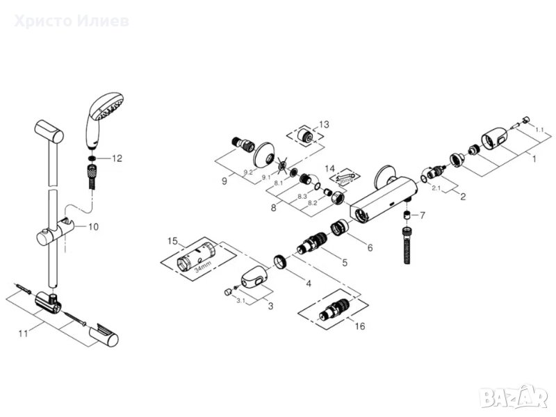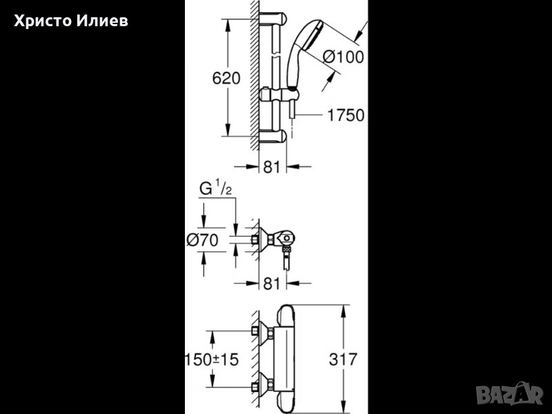 Grohe Термостатен смесител за душ с душ слушалка гарнитура