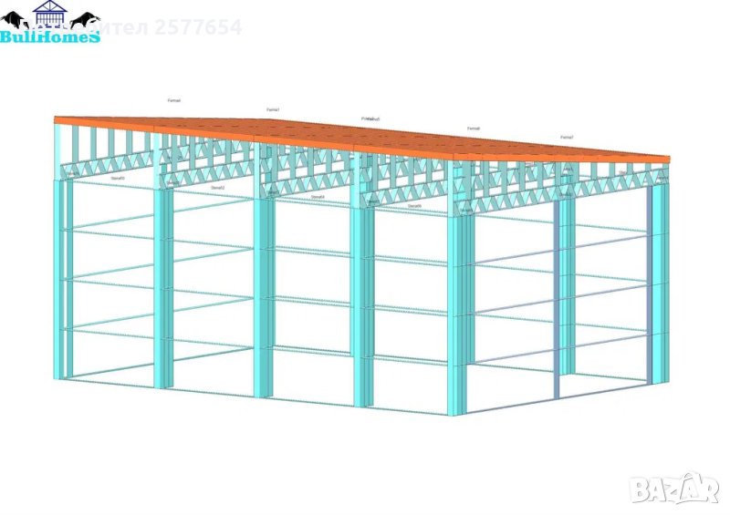Конструкция за Хале, склад 70м2 -7.00м х 10.00м х 4.00м- етап Конструкция - готови за сглобяване профили.