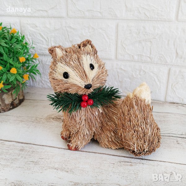 Декоративна фигура Лисичка от слама. Кума Лиса с грациозна опашка. Лисицата е ръчно изработена от естествени материали. Красиви и цветни – чудесна декорация или идея за подарък!