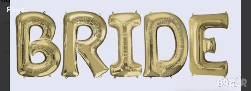 Балони с надпис BRIDE, в златист цвят. Дължина на буквата- 55см.