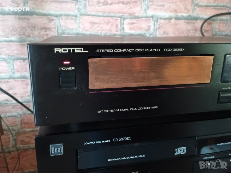 Останалото на място във Враца. Цената е твърда. Има унив. дистанционно. Плеърът не е ремонтиран (пояснявам за хората, които не правят разликата)!!! Чете всякакви аудио дискове без затруднения. Тежък. Това отпред е чиста мед, не знам за какво са го слагали, маниящина някаква. Трафът вътре е колкото на усилвател, с четворни разделени захранвания и тн.
