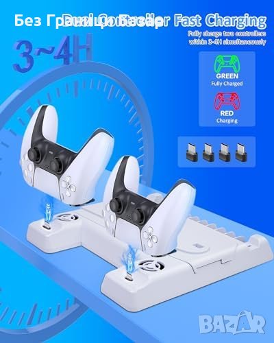 Бързо Зареждане: Станция за зареждане на два контролера PS5 edge/PS5 за 3-4 часа с LED индикатори за статус на зареждане.