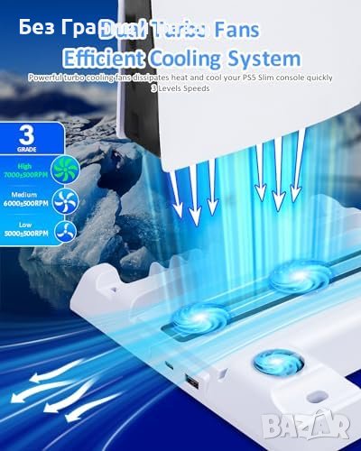 Нова PS5 Slim Охлаждаща Стойка със Станция за Зареждане и Игрални Слотове