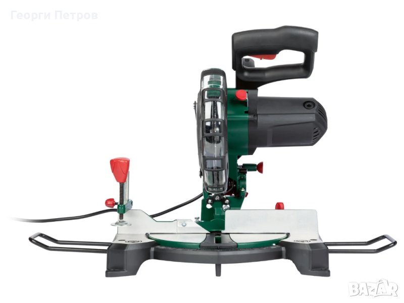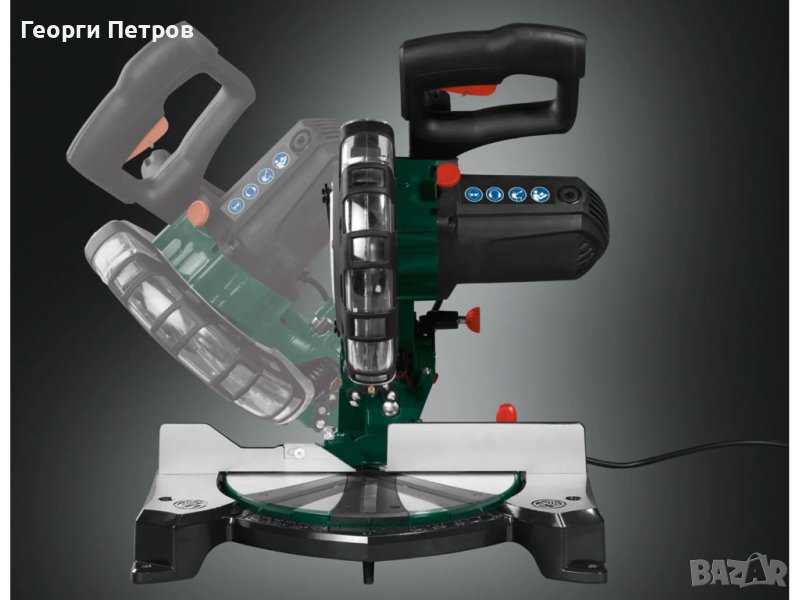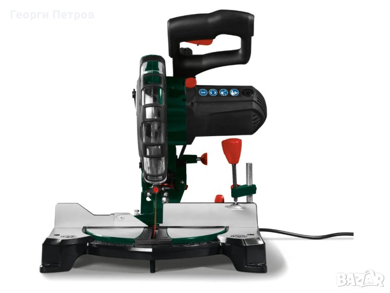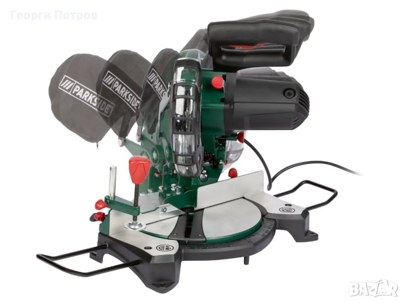 циркуляр с герунга 1500W ,закупен от Германия Parksisde За точното рязане на дърво и пластмаса Лазер за повишена точност на рязане Безкрайно накланяща се глава Потъващото устройство може да се регулира непрекъснато или с фиксирани ъгли Устройство за захващане и странична подпора за фиксиране на детайла Лесно се поставя върху торбичката за прах Също така може да се свърже с външен прахоулавяне С лазер за повишена точност на рязане Подходящ за монтаж на фиксиран работен плот мощност: около 1500 вата Номинално напрежение: приблизително 220-240 волта ~ / 50 Hz Скорост на празен ход: приблизително 5000 min-1 Настройка на наклона: 0 ° до 45 ° Наклон: -45 ° до + 45 ° Дължина на рязане: максимум 120 мм Височина на рязане: максимум 60 mm (35 mm при 45 °) Диск за рязане : Ø приблизително 210 мм / 48 зъба (предварително сглобена) W 405 х H 420 x D 300 мм (без принадлежности, главата на машината е в долната позиция) W 405 x H 340 x D 468 мм (без принадлежности, главата на машината в горна позиция) Скоба: приблизително W 85 x H 50 x D 125 mm Поддръжка на детайла: приблизително W 190 x H 98 x D 22 мм (Ø приблизително 8 мм) Тип на шпиндела: приблизително W 162 x H 208 x D 30 mm (Ø приблизително 8 mm) Хекс ключ: SW 6 Шестограмен ключ: SW3 Торбичка за прах: приблизително L 310 x W 160 мм (връзка Ø приблизително 40 мм) тегло : 7.7 кг Аксесоари в комплекта: 1 торбичка за прах, 1 инструмент за смяна на