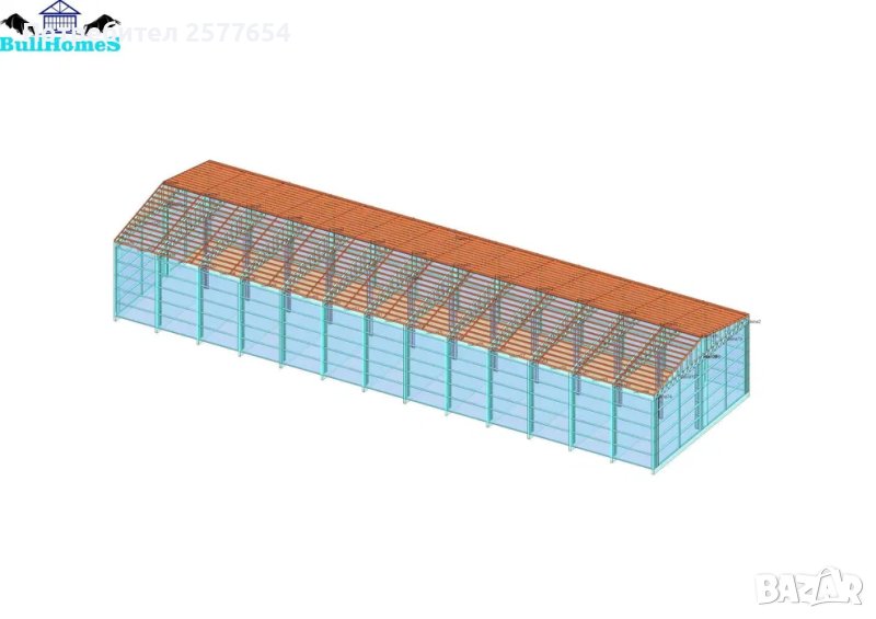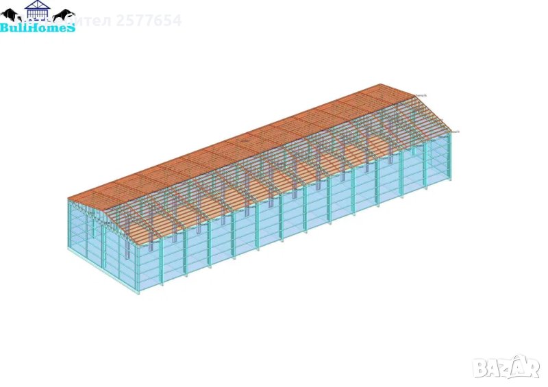 Конструкция за Хале, склад 480м2 - 12м х 40м х 5м - етап Конструкция - готови за сглобяване профили.