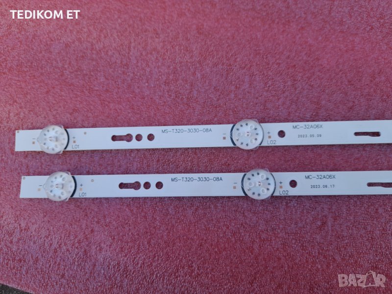 нова LED ПОДСВЕТКА MS-T320-3030-08A, MC-32A06X, ,СЪВМЕСТИМИ СЪЩО С ЛЕНТИ: HL-3M320A30-0601S-01 ; MS-L2430 V2за CROWN ,Arieli, NEO LED-32T2, NEO LED-323HD и много други китайски телевизори.Дължина-575 mm.