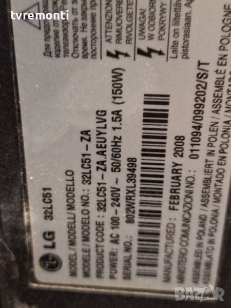 дисплей LC320WX6 SLA3 за телевизор LG модел 32LC51 → Обява 44161634