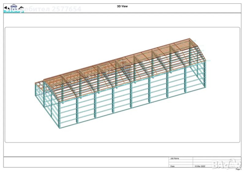 Хале, склад 300м2 -10м х 30м х 2.80м - етап Конструкция - готови за сглобяване профили.