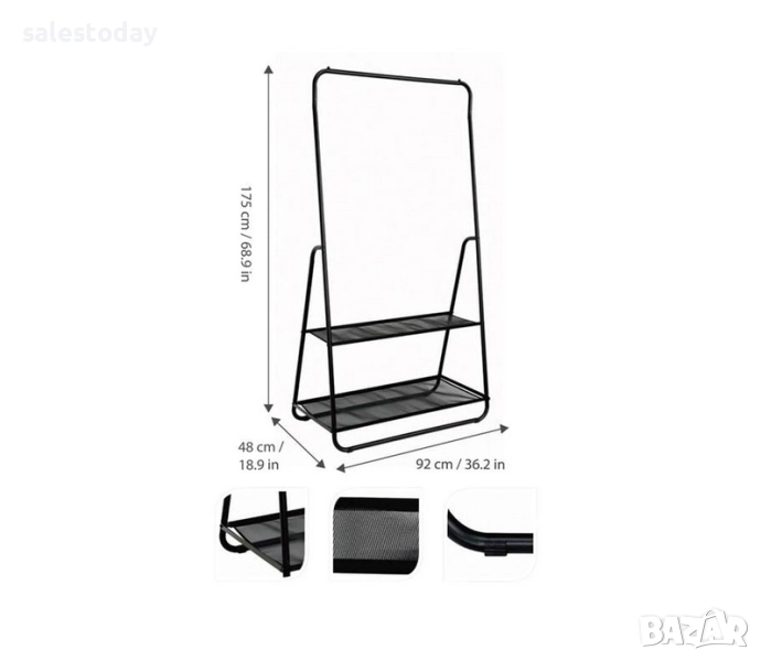 Модулна закачалка за дрехи с 2 рафта, Етажерка- Щендер с колелца, 175см, снимка 1 - Закачалки - 44162745 Модулна закачалка за дрехи с 2 рафта, Етажерка- Щендер с колелца, 175см, снимка 2 - Закачалки - 44162745 1/2