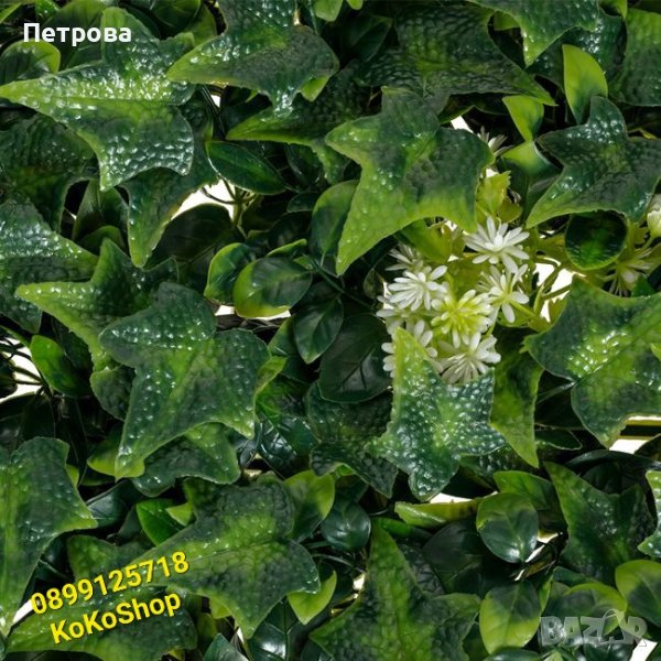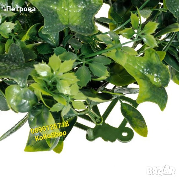 Декоративно пано със зеленина. Основата на паното е от пластмаса,покрита с изкуствени листа.