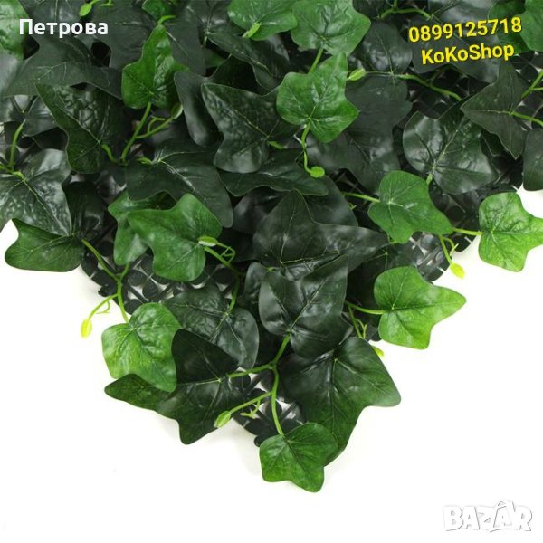 Декоративно пано със зеленина. Основата на паното е от пластмаса,покрита с изкуствени листа.