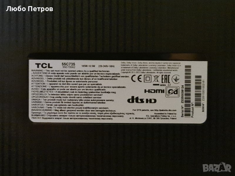 Продавам телевизор TCL 55 инча, 144Hz, 4К, Смарт с Google TV