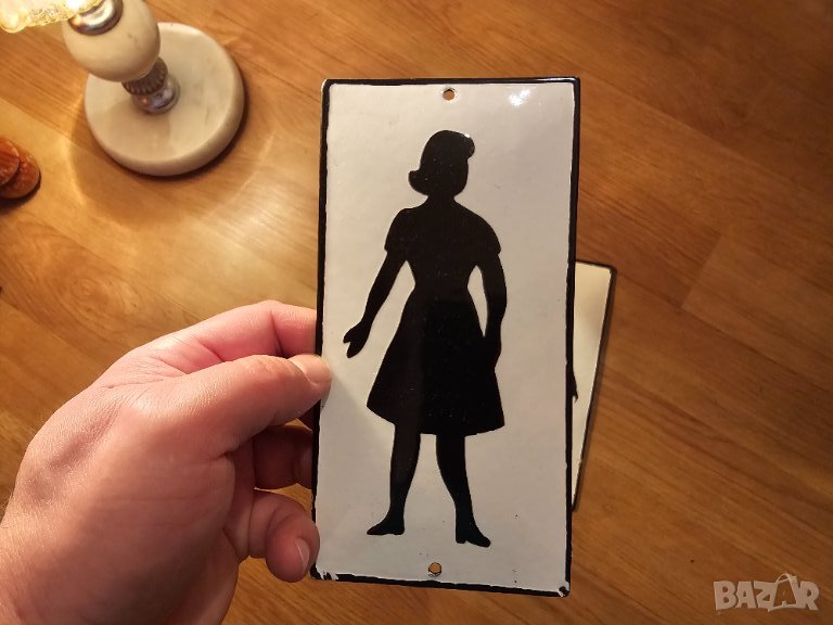 емайлирани табели за тоалетна ЖЕНИ МЪЖЕ , табела за съблекалня ЖЕНИ МЪЖЕ .. от 70те за вашето заведение, бар, механа
