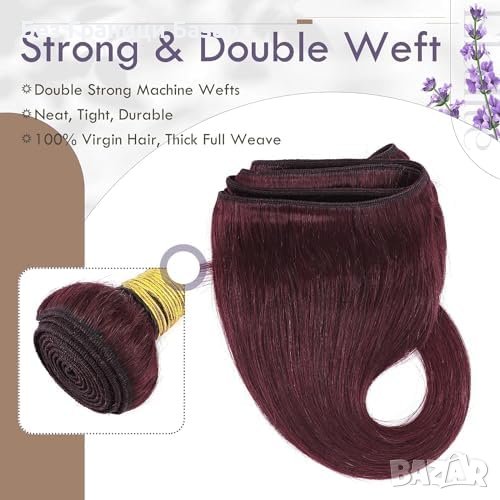 Нови Естествени Удължения за Коса 7A, 100г, Винено Червено треса