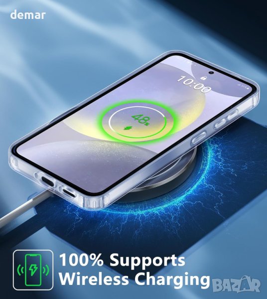 Samsung Galaxy S24 Plus, като предлага перфектно прилягане за 6,7-инчовото устройство с прецизни изрези за всички портове и функции. Изработен от ултрапрозрачен материал на Bayer, той е устойчив на UV лъчи, петна и пот, като запазва своята прозрачност без пожълтяване, като по този начин запазва оригиналния вид на телефона. Калъфът включва първокласен закален протектор за екрана и протектор за обектива на камерата, осигуряващи пълна защита, без да се засяга чувствителността на допир или качеството на снимките. Той може да се похвали с 10FT военна защита при падане благодарение на своята поликарбонатна конструкция, удароустойчиви TPU брони и технология за въздушна възглавница, предпазвайки вашето устройство от изпускане, удари и драскотини. Въпреки защитните си характеристики, калъфът поддържа тънък профил и осигурява сигурно захващане, което го прави лесен за носене и стилен, практичен подарък за всички потребители.