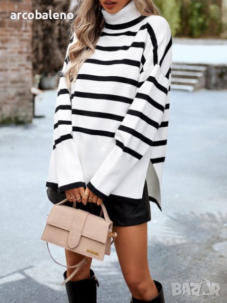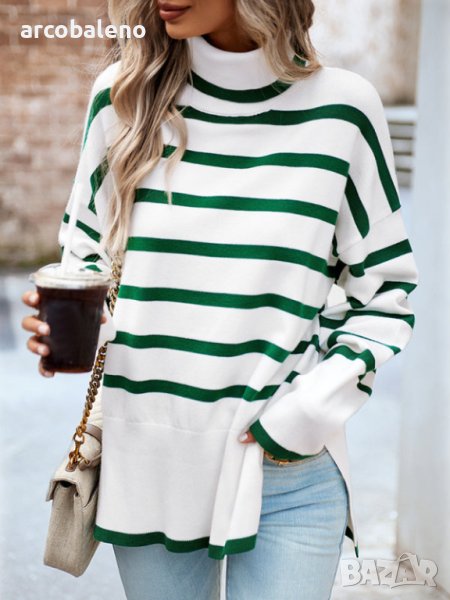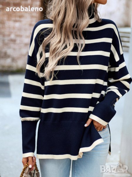 Дамски ежедневен раиран плетен пуловер, 5цвята