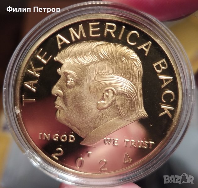 Плакет/Токен ,, Доналд Тръмп " в защитна капсула.Мат гланц (proof) Позлатена → Обява 44168530
