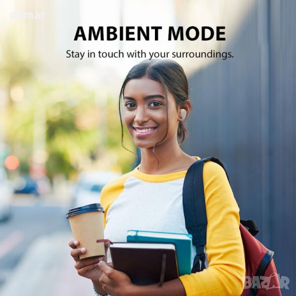 Изпитайте подобрено слушане с хибридно активно шумопотискане, способно да блокира до 24dB шум от околната среда за поглъщащ звук. С Ambient Mode се активират вградените микрофони, което ви позволява да останете свързани със заобикалящата ви среда чрез предаване на външни звуци директно към ушите ви. Първоначалната настройка е лесна, тъй като слушалките автоматично влизат в режим на сдвояване, когато се извадят от калъфа, което опростява процеса на свързване. Следете живота на батерията и състоянието на зареждане с удобния дисплей на батерията на кутията. Насладете се на удължено време за възпроизвеждане с до 6 часа с едно зареждане и впечатляващите общо 24 часа с кутията за зареждане, което гарантира, че вашите нужди за слушане са задоволени през целия ден.