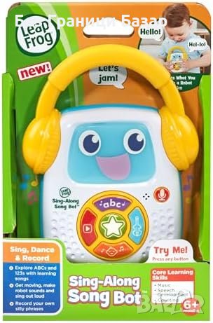 Обучение чрез Музика: LeapFrog Sing-Along-Song Bot запознава бебета и малки деца с ранния език и звуци чрез 3 вида музикални категории, стимулирайки езиковото развитие и слуховите умения.