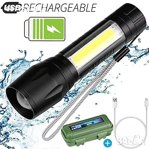 НОВ МОЩЕН LED ФЕНЕР CREE СЪС ZOOM ФУНКЦИЯ,СОС 3 РЕЖИМА,ПРЕЗАРЕЖДАЕМ,USB КАБЕЛ.ФЕНЕРИ FLASH ФЕНЕРЧЕ