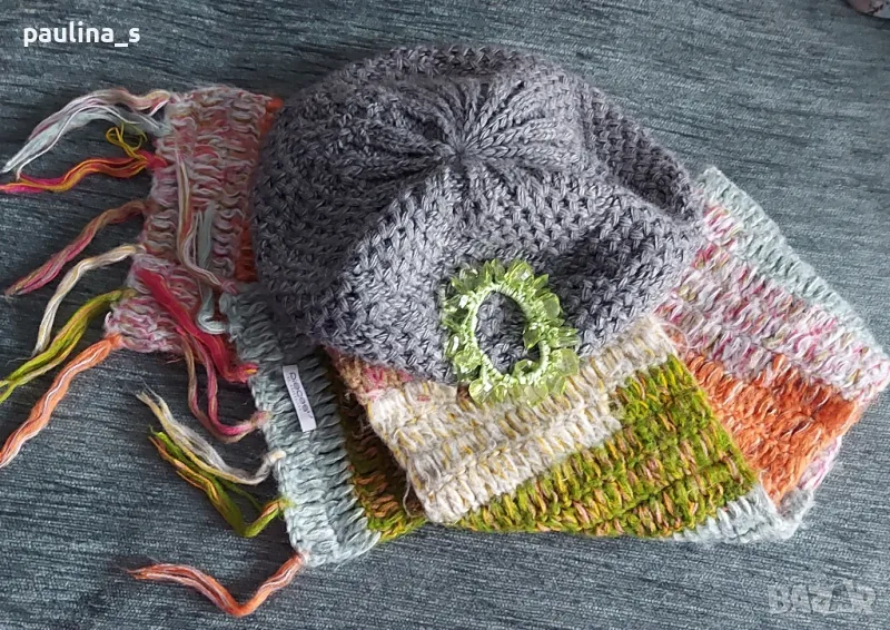 - Сива плетена шапка тип барета универсален размер (на ластик в края).