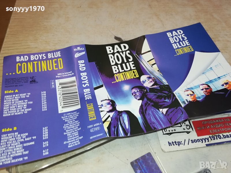 Bad Boys Blue – Continued лицензна касета-КРАЙНИ ЦЕНИ.ПАЗАРЛЪЦИ НЕ! пращаме със спиди или еконт с преглед и тест след превод на капаро за куриерската услуга поради зачестили некоректни потребители-поръчки само тук в саита! по телефона и със смс не! краини цени! бартери не правиме! ПАРИ НЕ ВРЪЩАМЕ! всеки ден нови неща-още 2-3 наши обяви тук