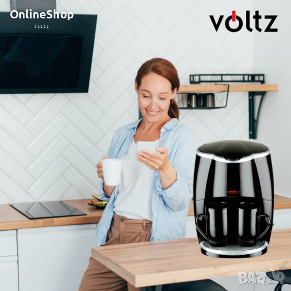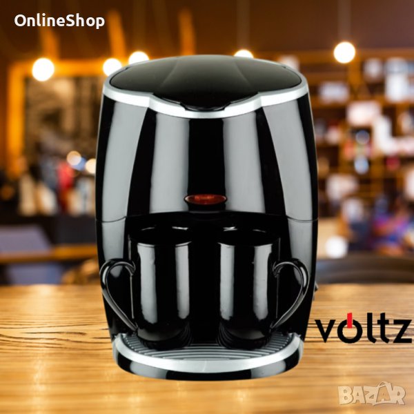 Кафеварка Rosberg Voltz 450W с две чаши, Черна, 2 ГОДИНИ ГАРАНЦИЯ