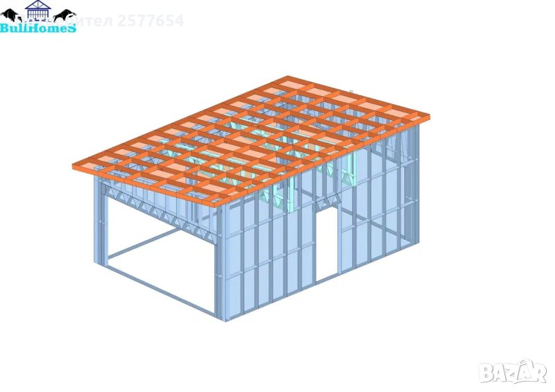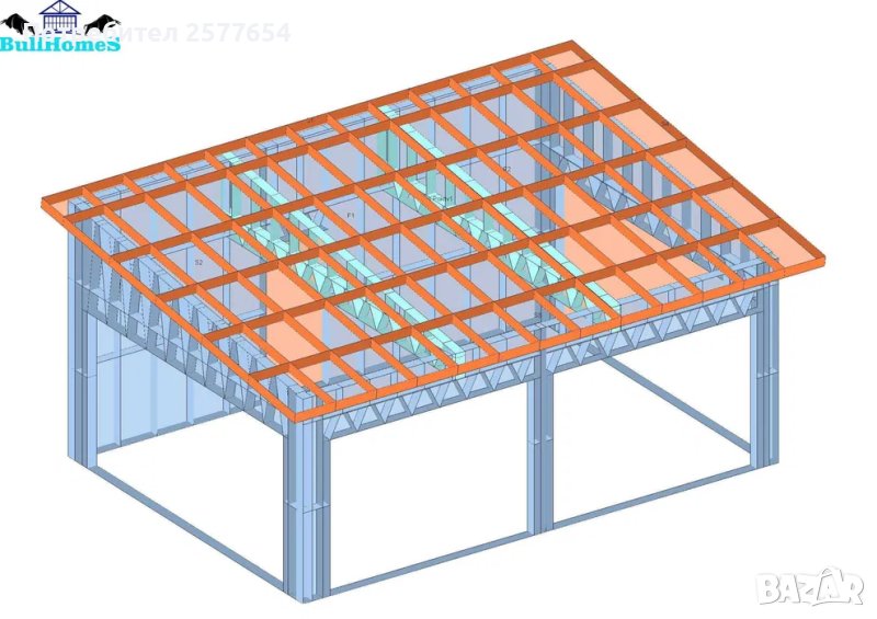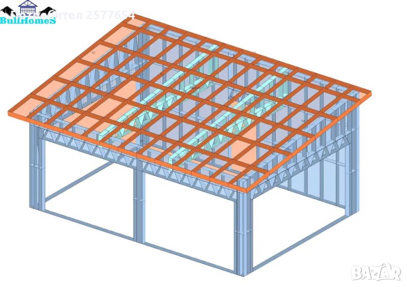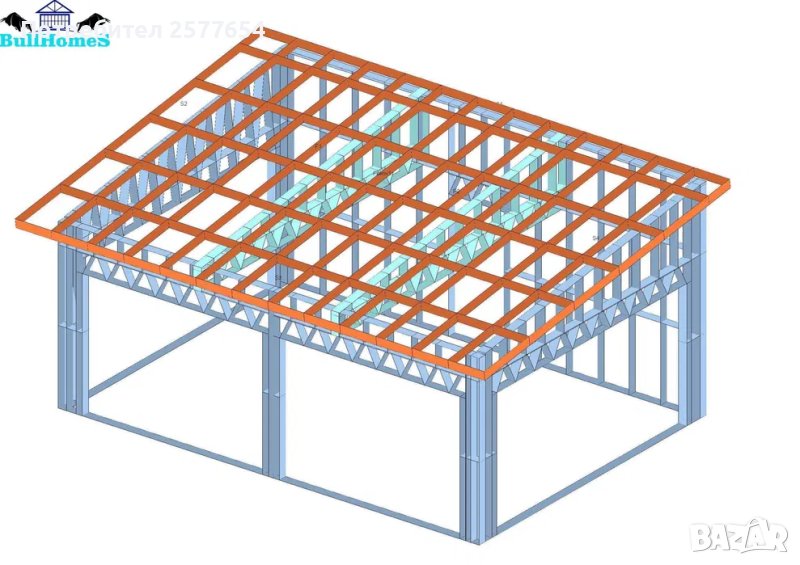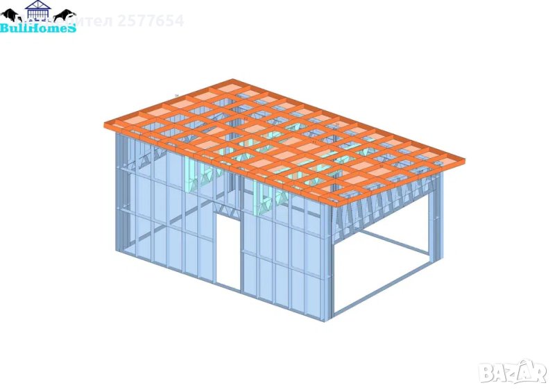 Конструкция за Гараж- 33.5м²-6,7м x 5м - етап Конструкция - готови за сглобяване профили.