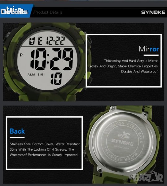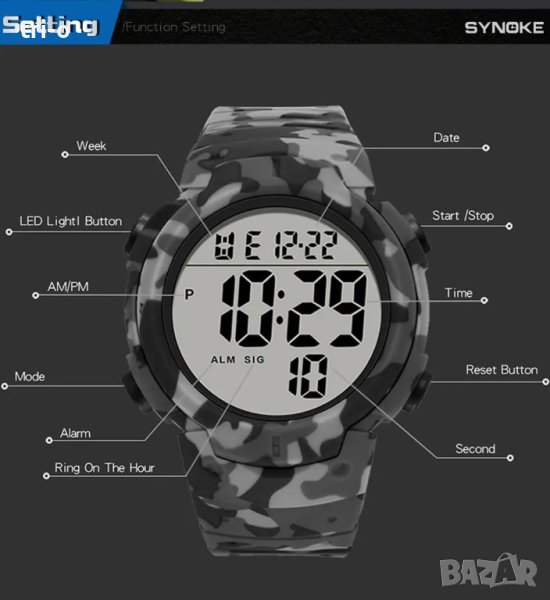 Synoke военен цифров часовник за мъже, спортен, водоустойчив